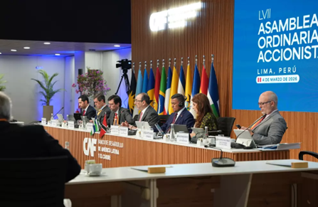 A 57.ª Assembleia Ordinária de Acionistas do Banco de Desenvolvimento da América Latina e Caraíbas (CAF) reuniu-se a 4 de março, em Lima, para analisar os resultados de 2025 e aprovar novas iniciativas estratégicas orientadas para o desenvolvimento sustentável da região, incluindo a criação de um novo Fundo Especial de Investimento de Impacto.